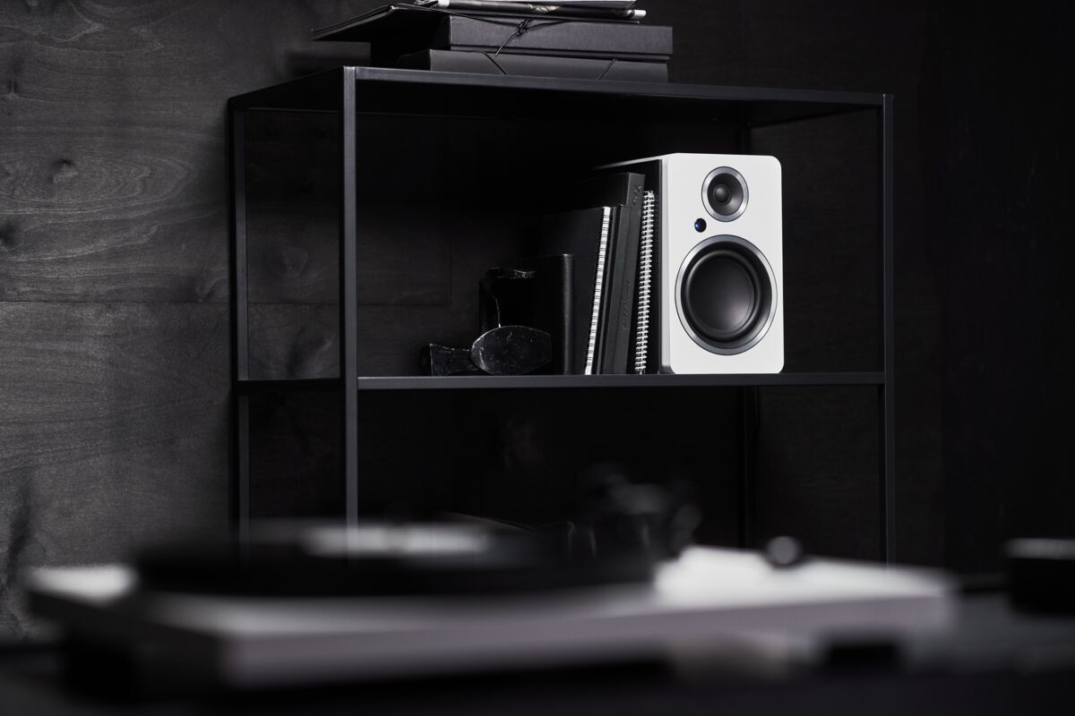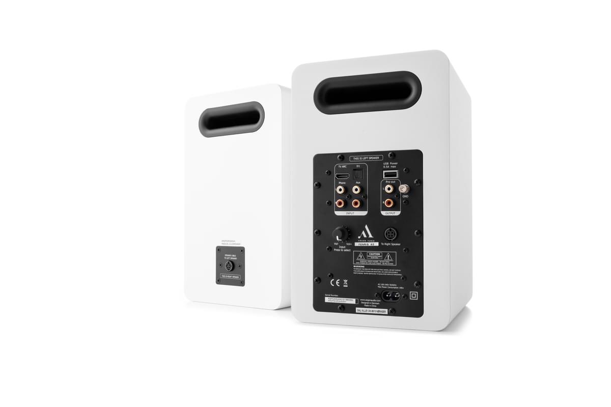 The speakers have a built-in amplifier and various audio inputs to connect external equipment inputs including an integrated RIAA phono preamplifier for MM cartridges.