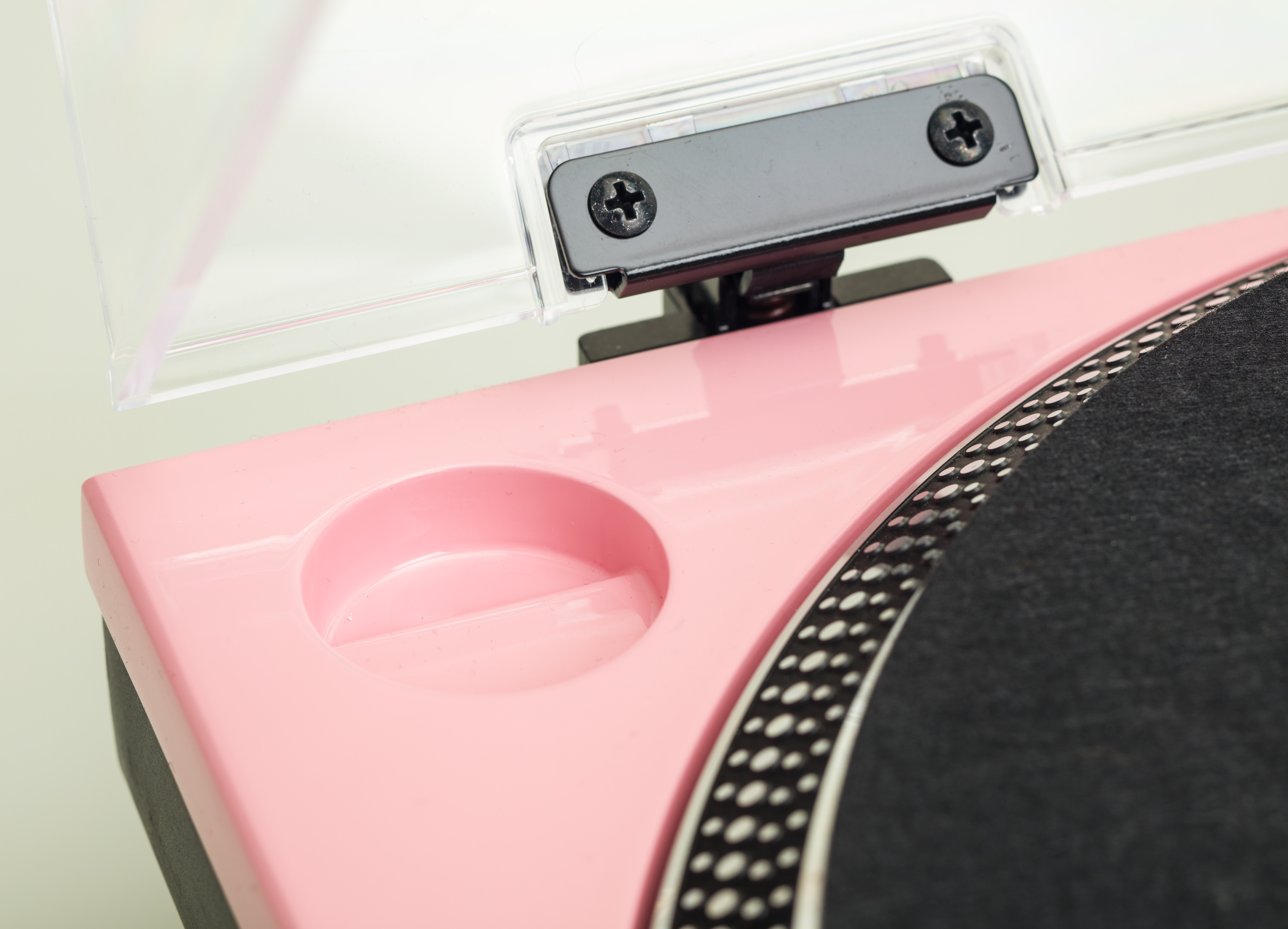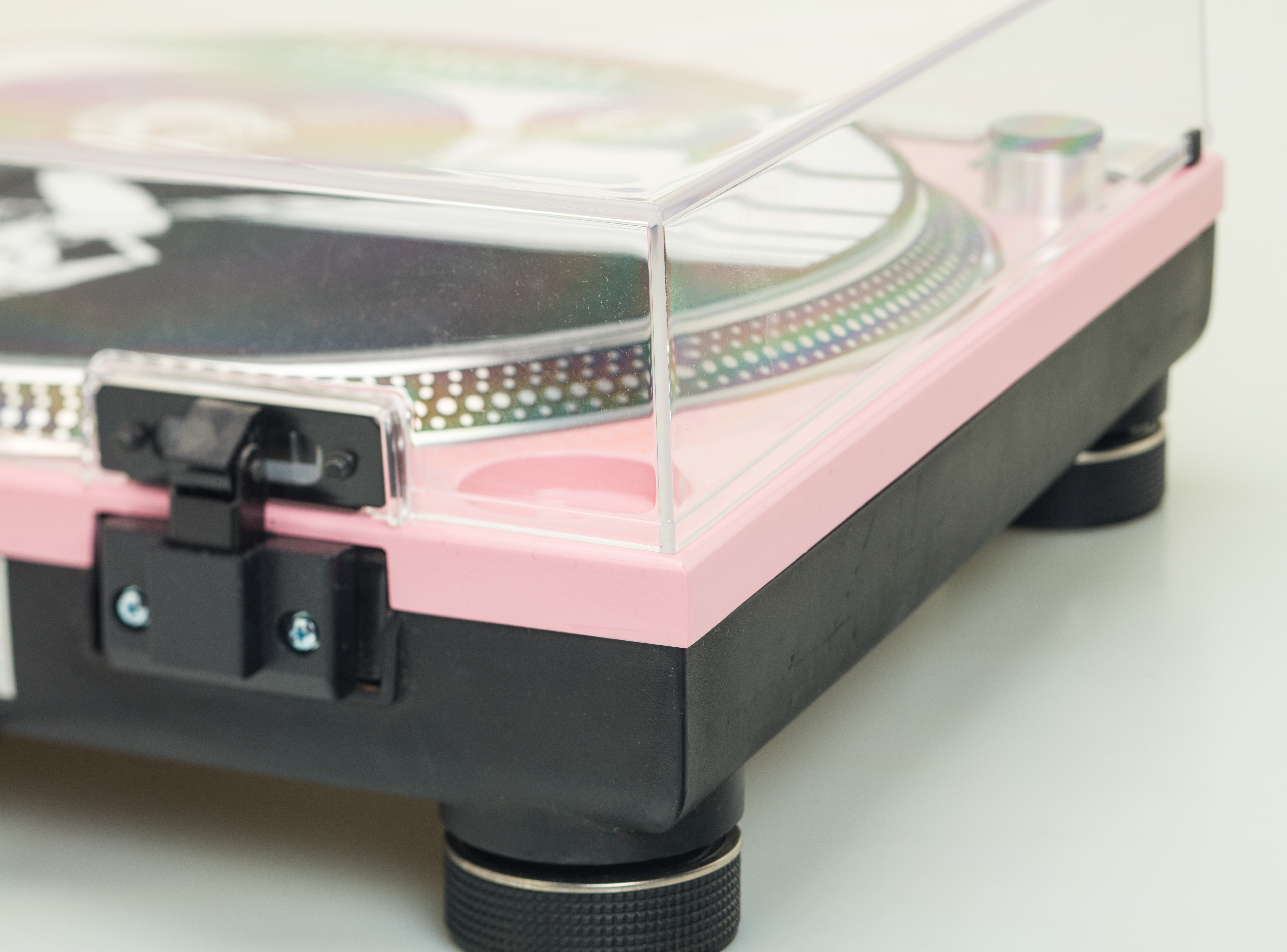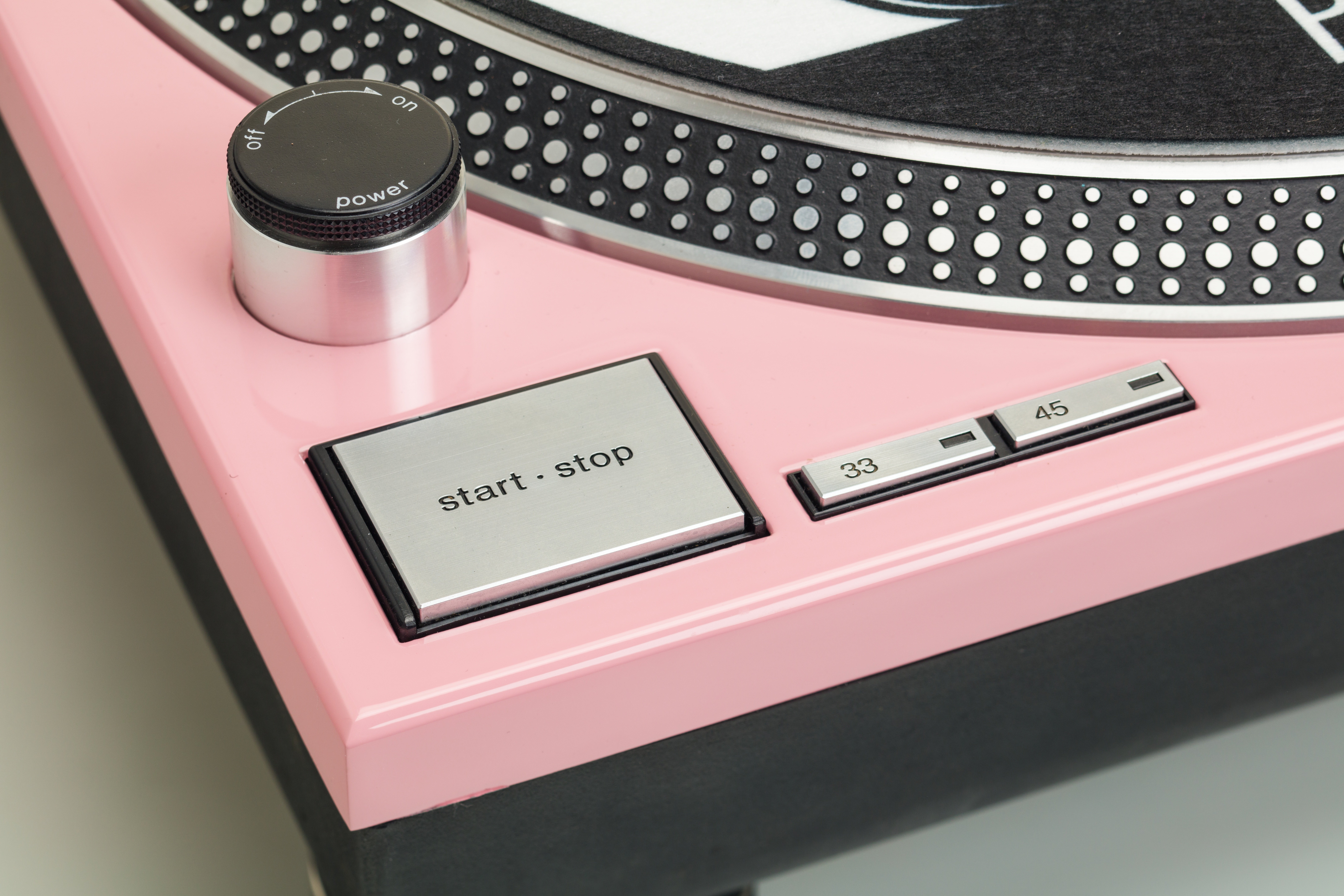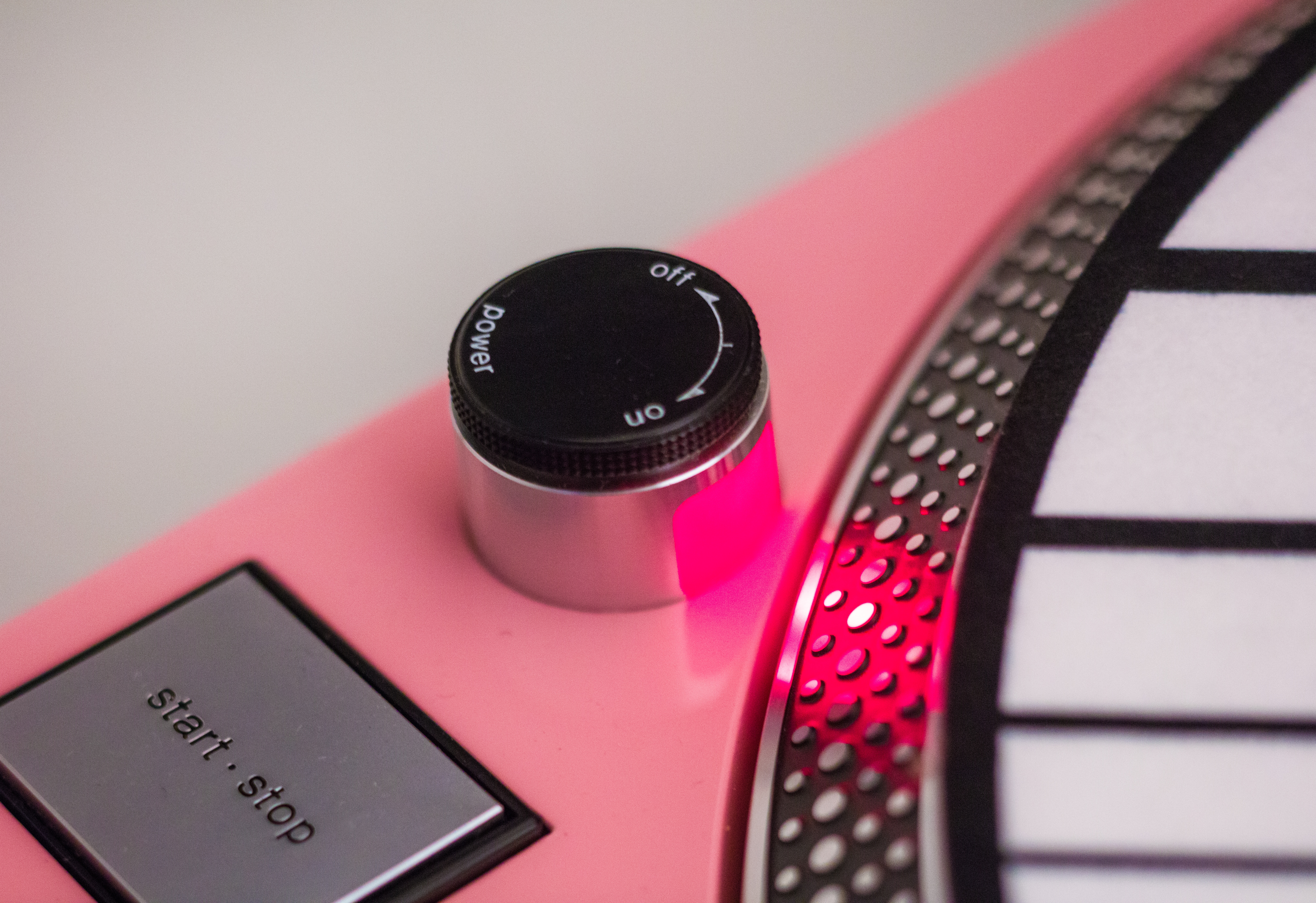 Gramofon byl modifikován novým nástřikem v růžové barvě.