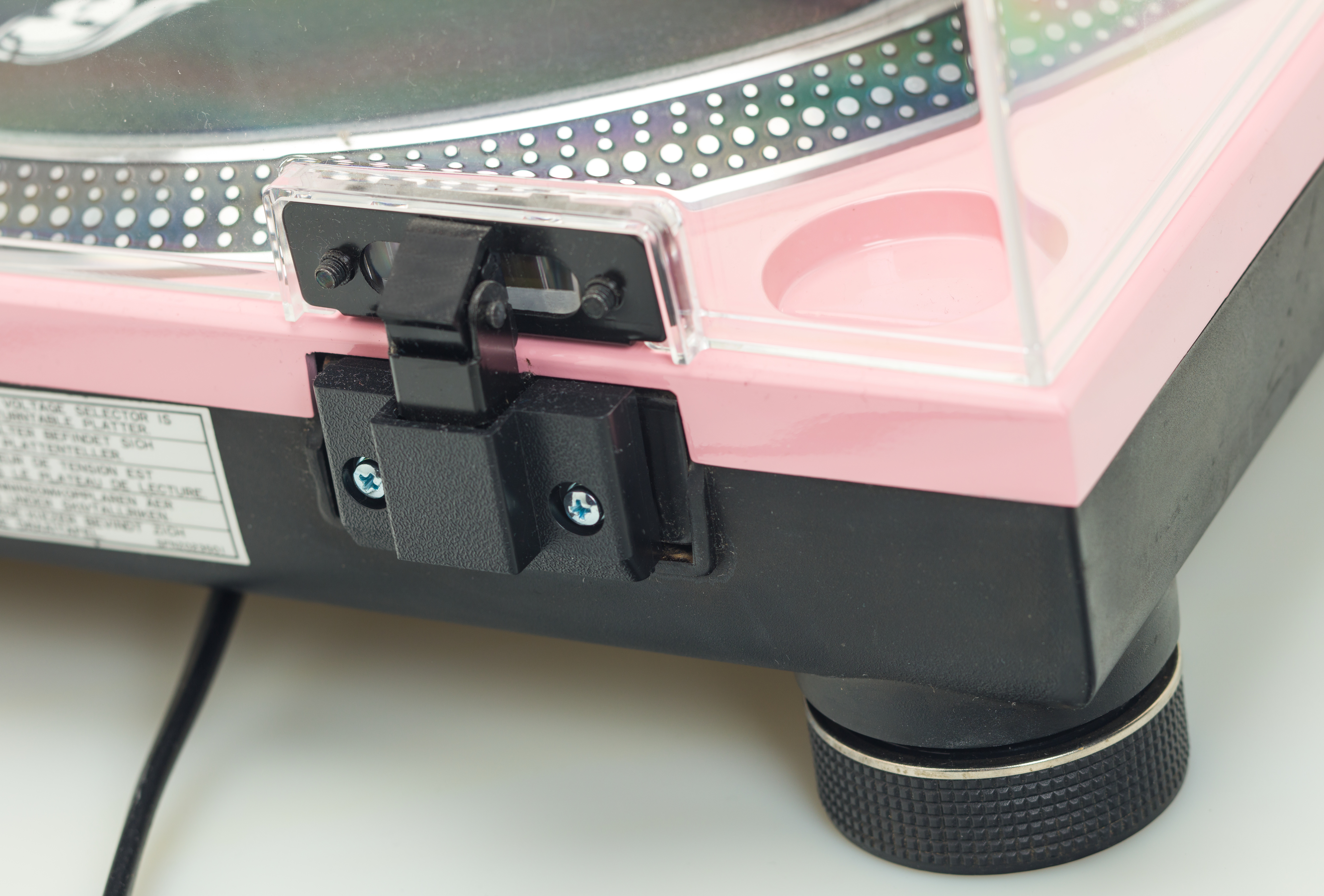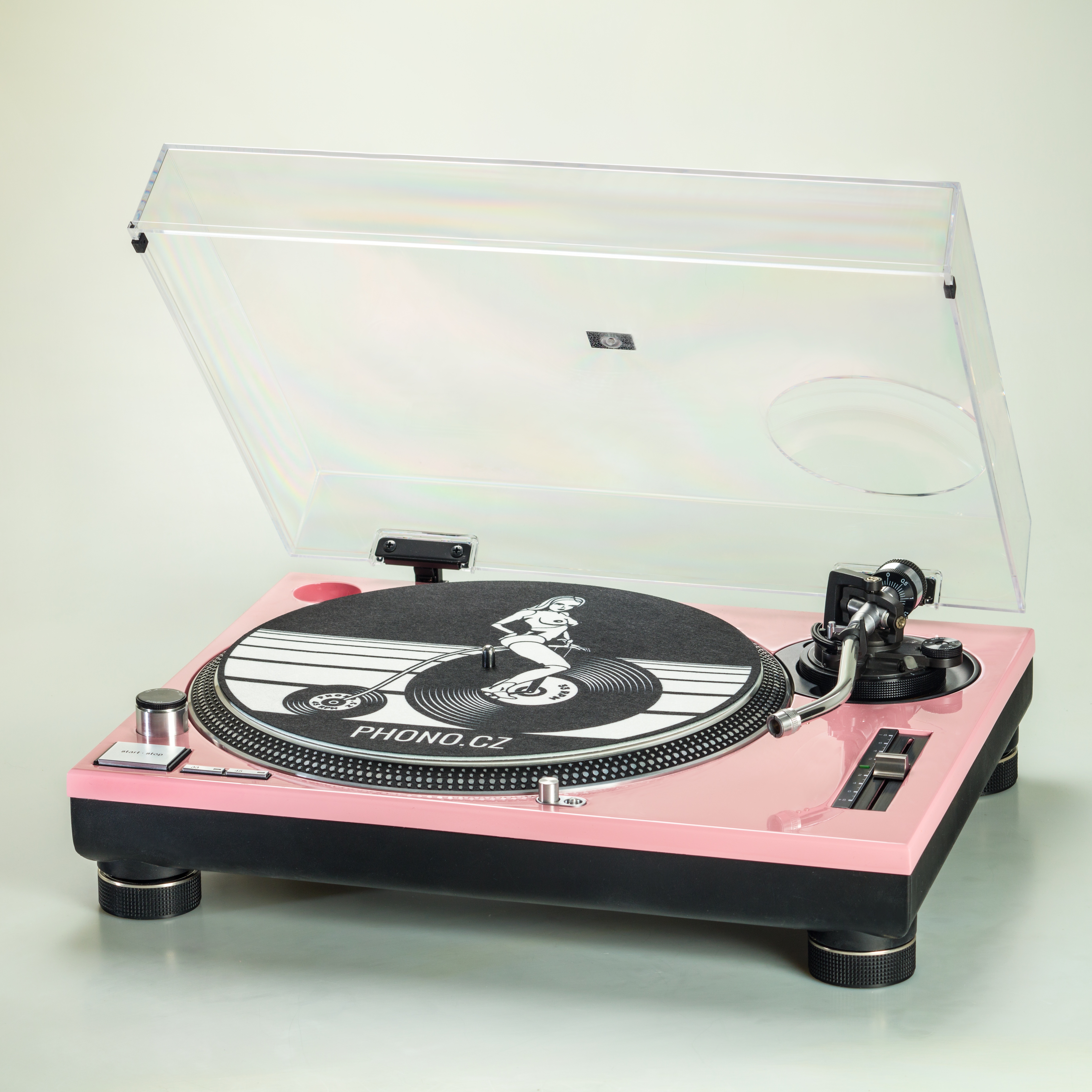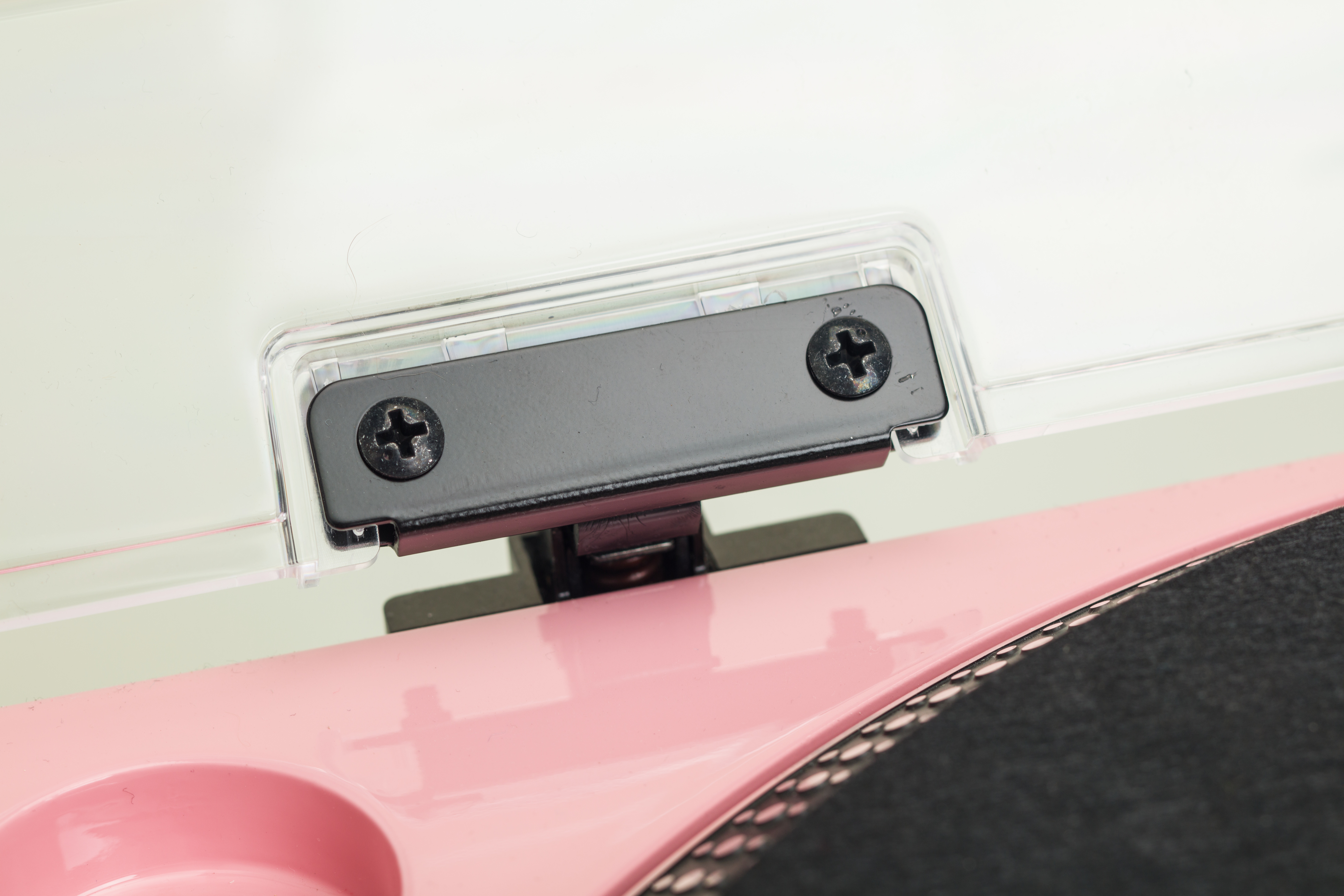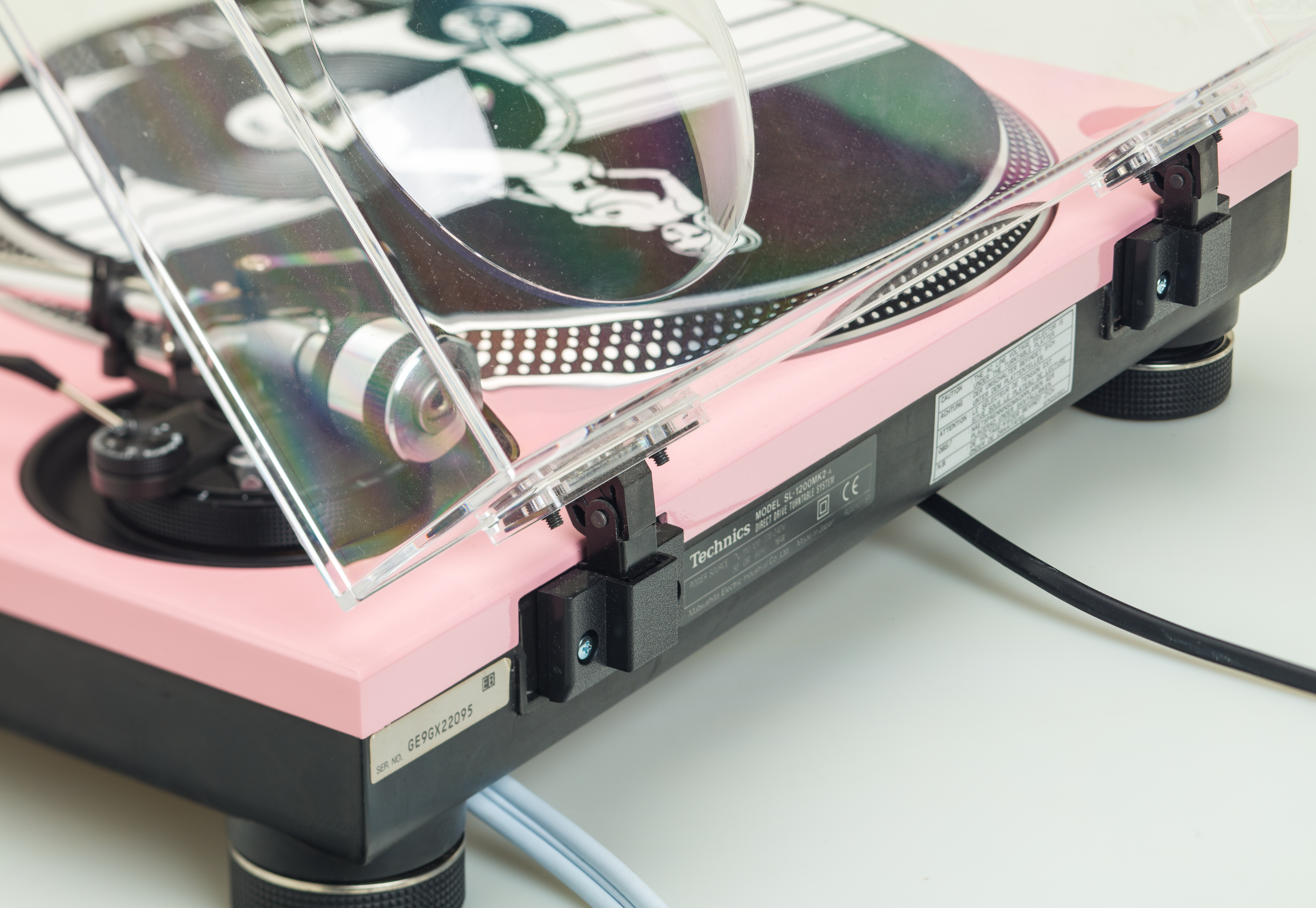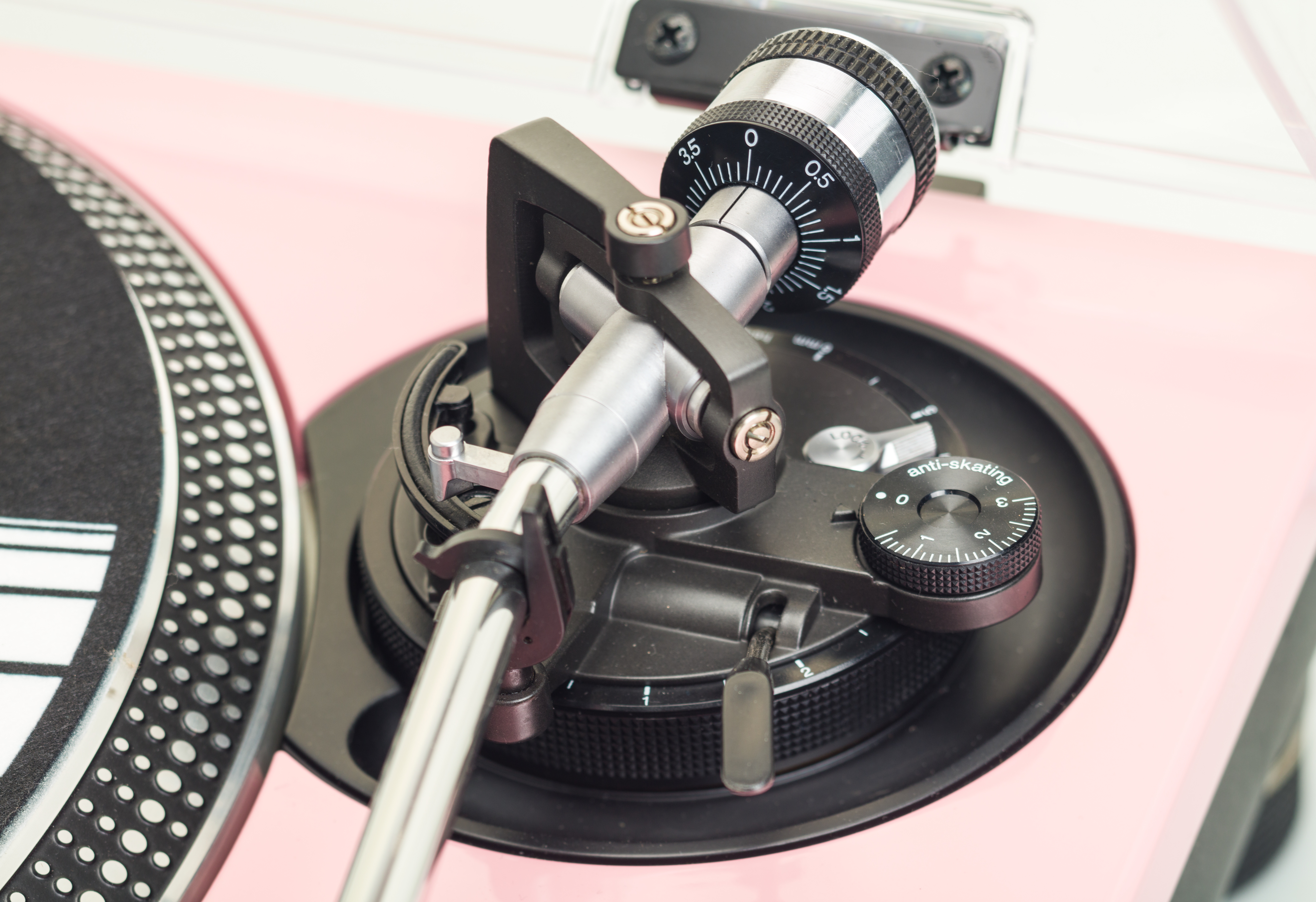 Gramofon byl modifikován novým nástřikem v růžové barvě.